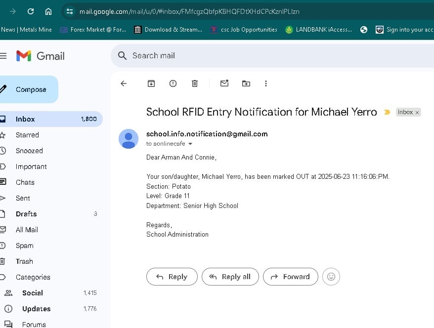 - Email Notifications: Parents receive real-time notifications when their child enters or leaves the school.